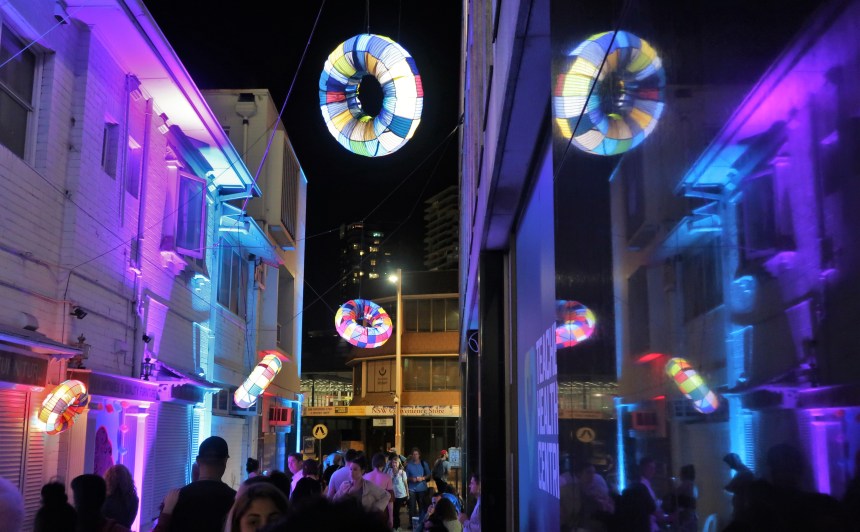Doughnuts installed in Batman Walk, Sweets ‘n’ Beats Lane, Parramatta Lanes 2016.